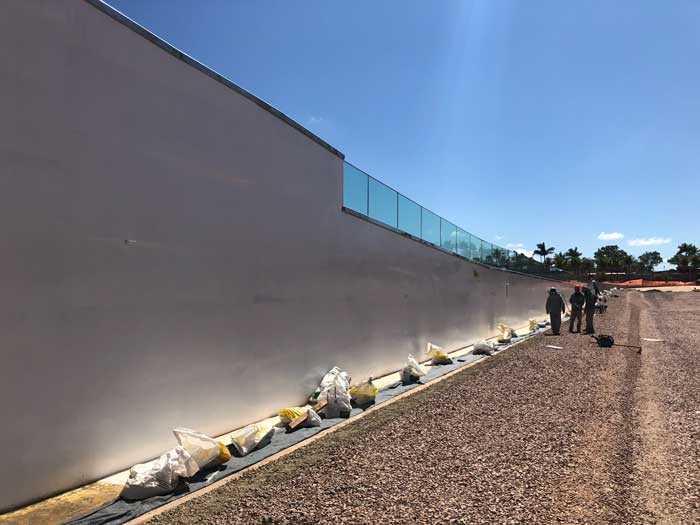 Facilmente misturado durante a dosagem, utilizou-se 0 PENETRON ADMIX para tratar 9.000 m³ de concreto da piscina de ondas e 1.290 m do perfil hidroexpansivo PENEBAR SW-55 para selar as juntas de concretagem.