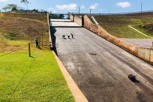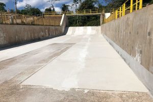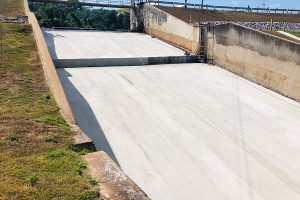 O processo de recuperação exigiu materiais com pega rápida e alto desenvolvimento de resistência à compressão nas primeiras idades. Nesse sentido, o tempo disponível para a intervenção é de aproximadamente 8 horas: as comportas são fechadas pela manhã e precisam ser reabertas no final da tarde para permitir o fluxo de água pelos vertedouros. Por isso, os materiais precisam atender a requisitos rigorosos — devem ser aplicáveis sobre superfícies úmidas, desenvolver resistência rapidamente e manter o desempenho mesmo em ciclos alternados de fluxo e ausência de água. O clima extremamente quente da região representa, ainda, um desafio adicional para a durabilidade das soluções aplicadas.